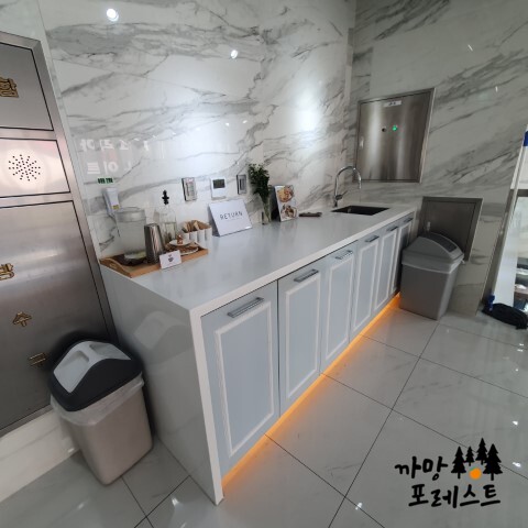 2층에 식판 정리와 함께 손도 간단히 씻을 수 있는 공간이 있습니다.
