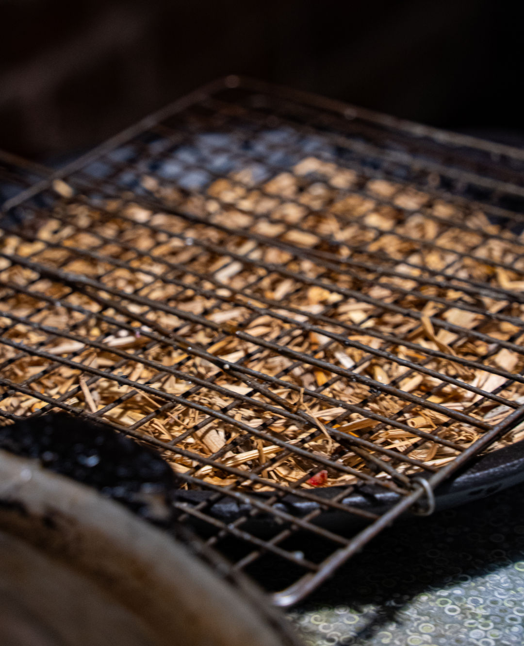 다 구워진 고기를 한쪽 구석에 모아준다.