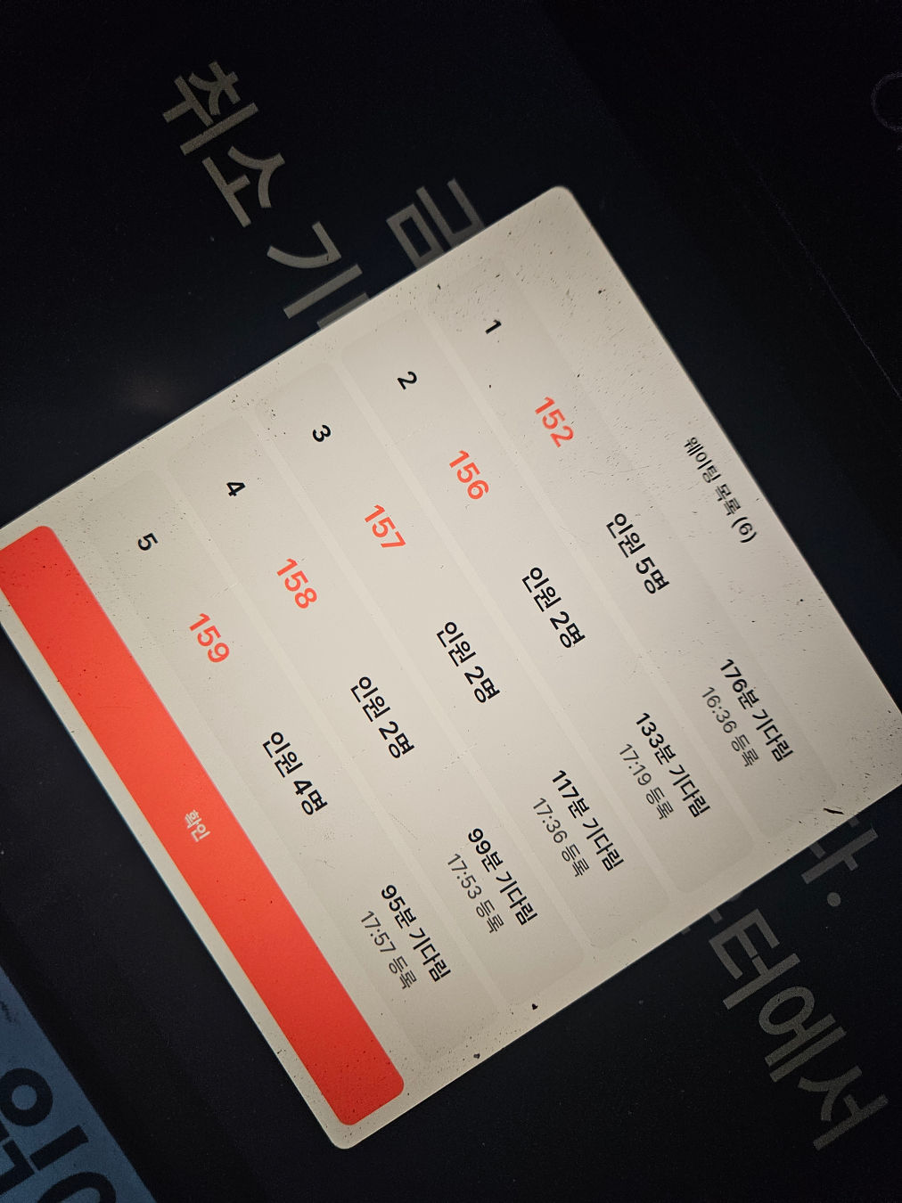 취소 기다리는 대기를 카운터에서 등록해야 했다.