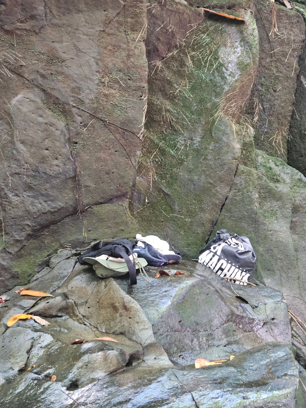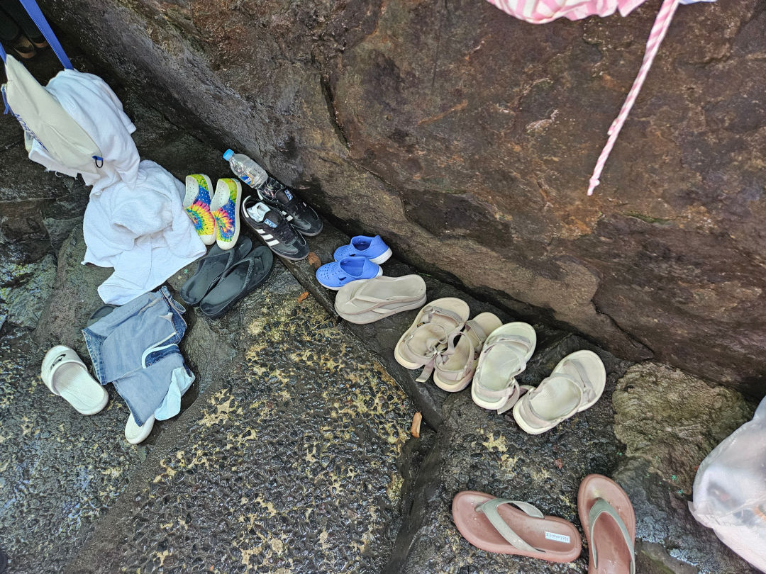 개인 물품이나 슬리퍼는 바위 틈에 놓기도 하는데