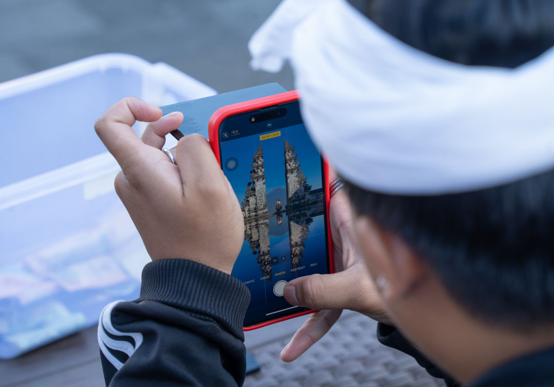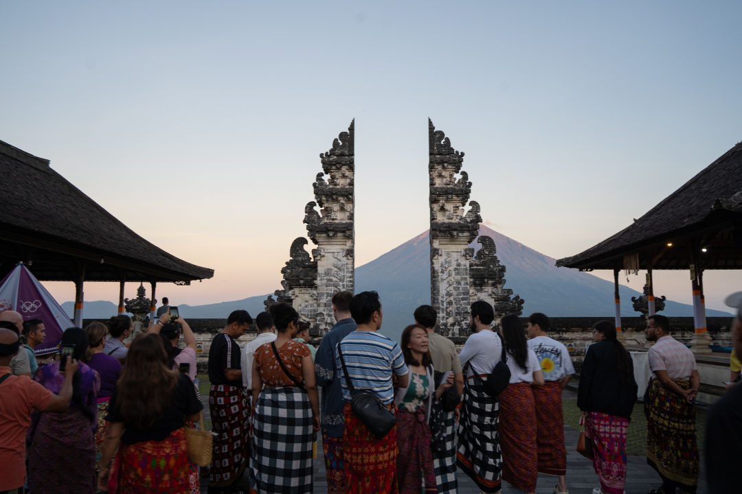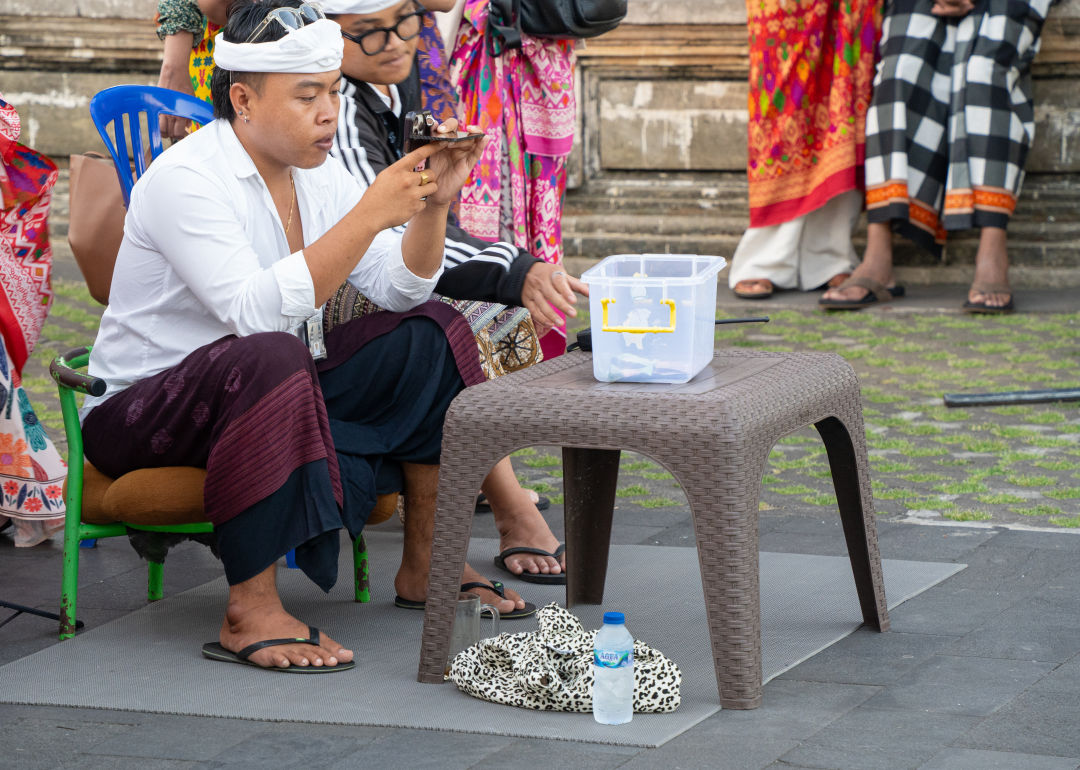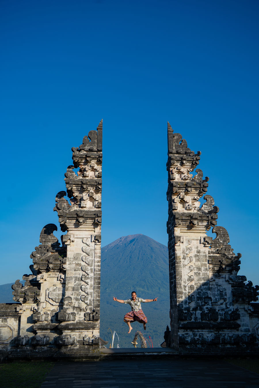 사롱 활용, 점프샷, 뒤돌아서 찍기, 발리식 인사 등
