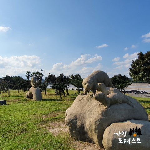 표선 해수욕장에 비치되어 있는 여러 석상들