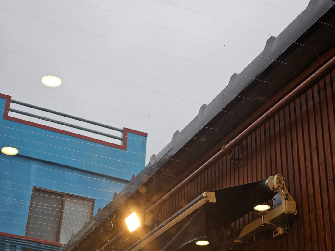 지붕에는 줄 같은 걸로 보호해주고 있다.