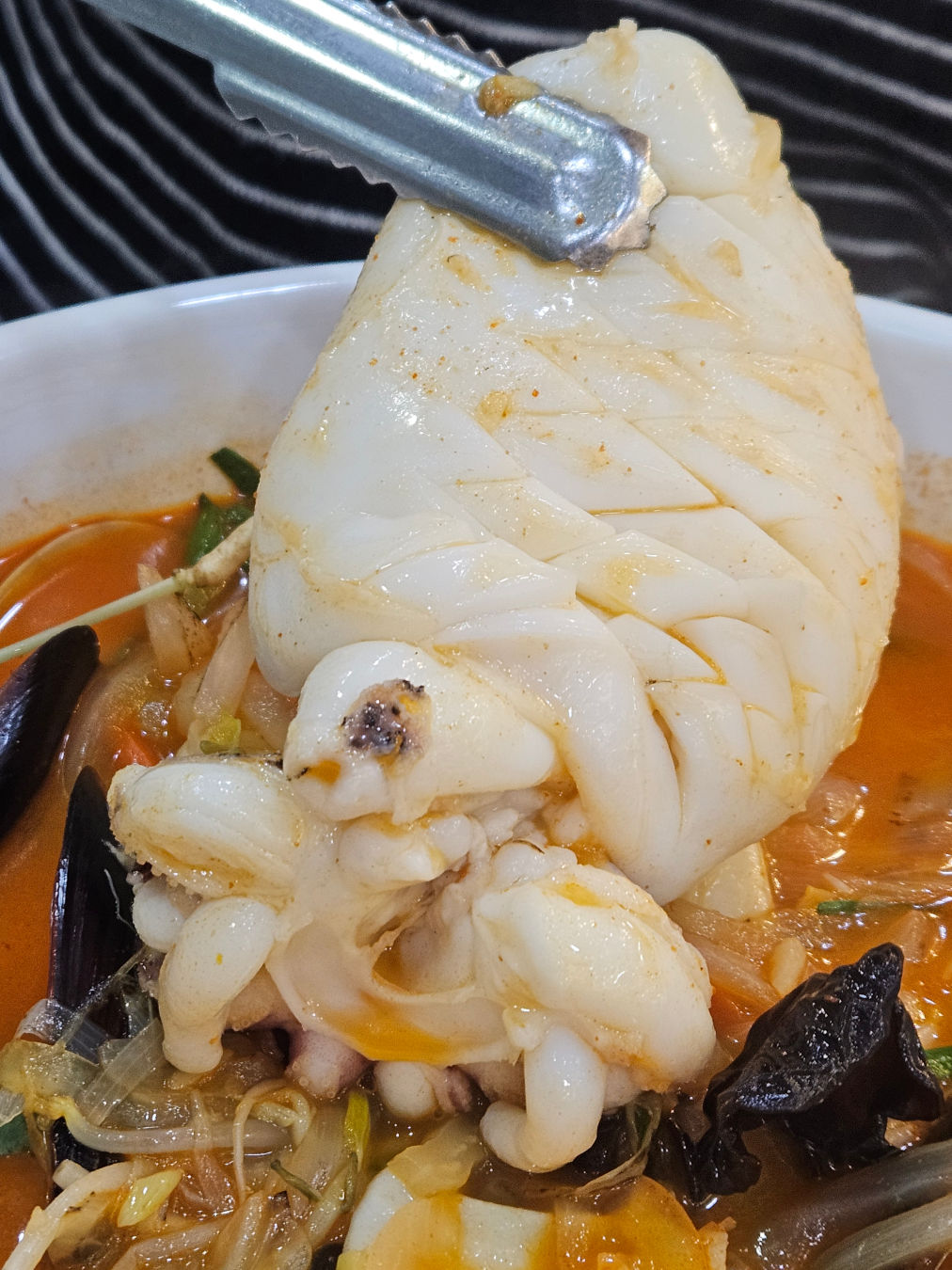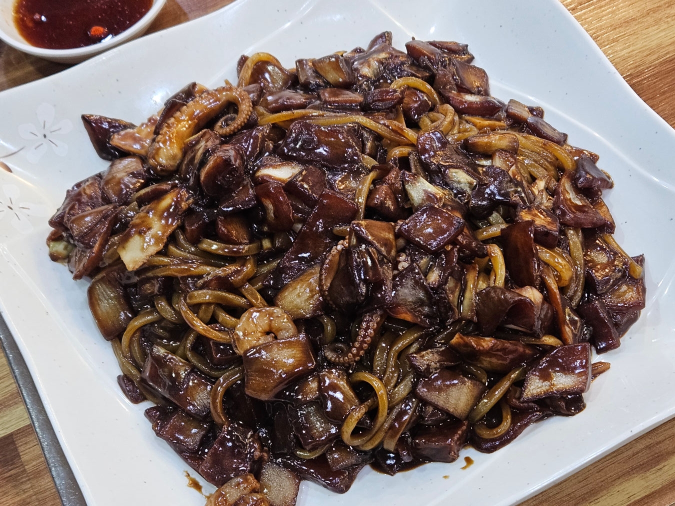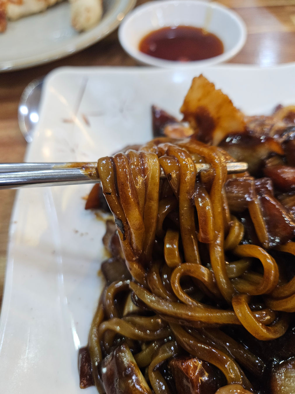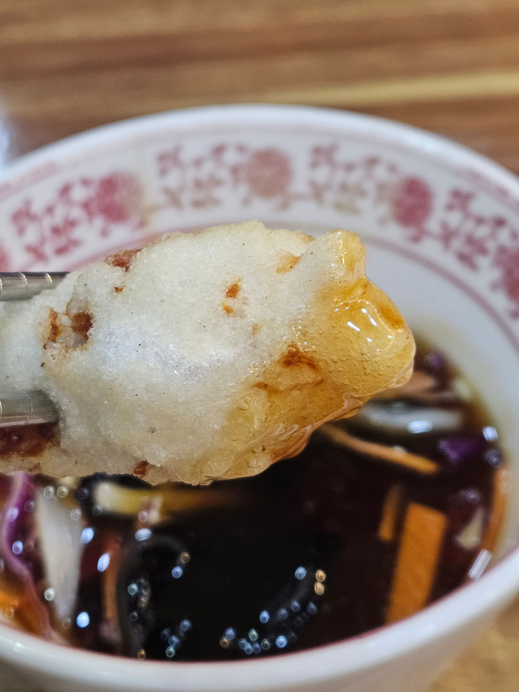 두툼한 식감이 짬뽕, 짜장과 같이 먹기 좋다.