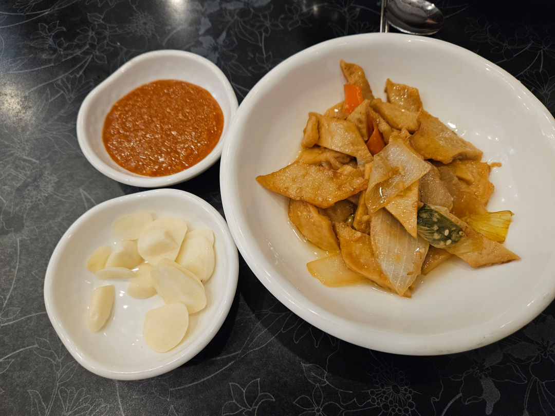 오뎅볶음, 마늘. 된장국