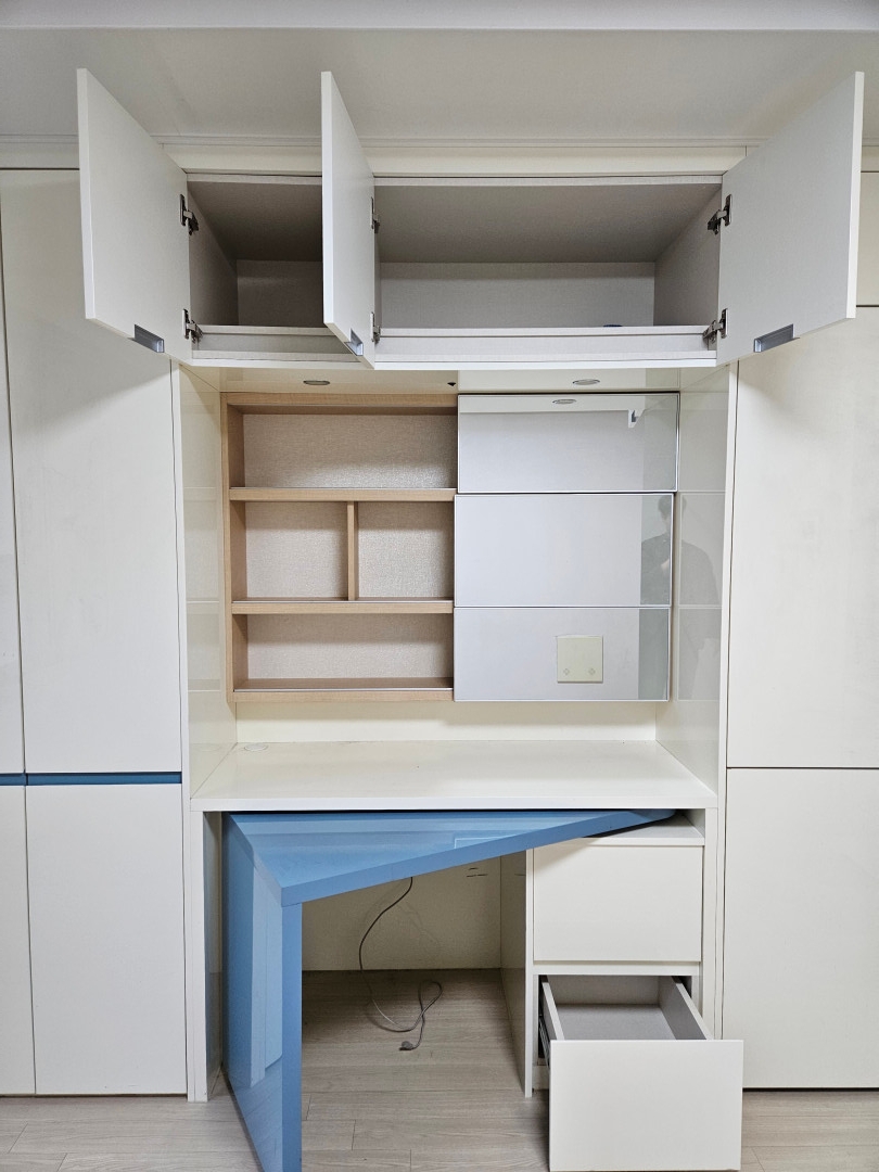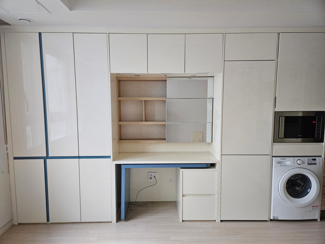 붙박이장, 책상 수납장, 냉장고, 전자렌지, 세탁기, 인덕션