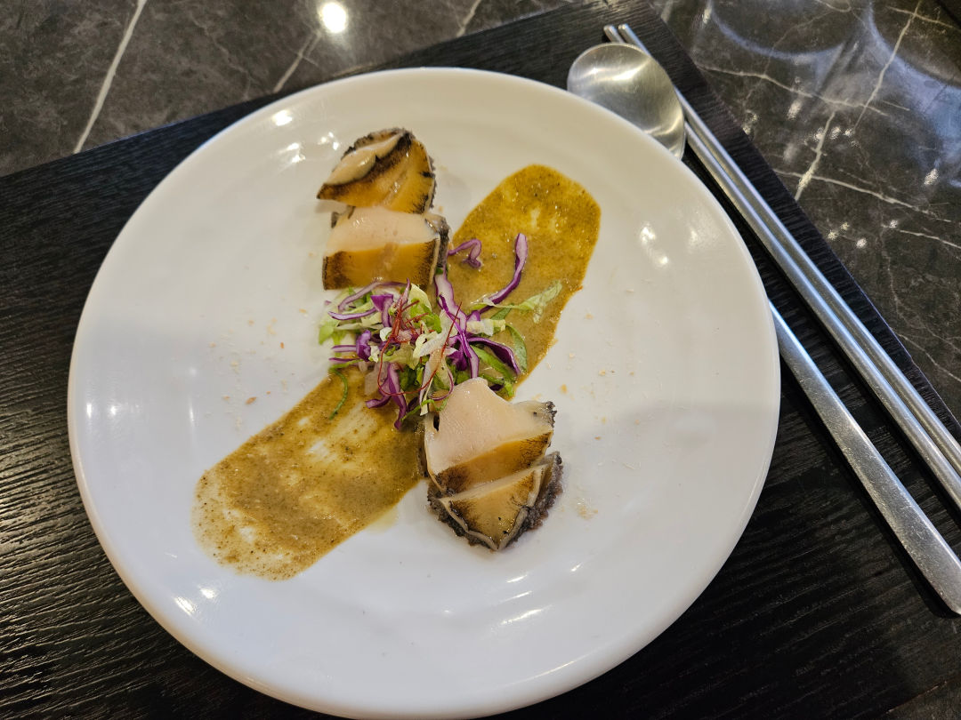 오랜시간 쪄낸 활전복과 미소 된장의 풍미를 더한 게우소스가 일품인 찜요리