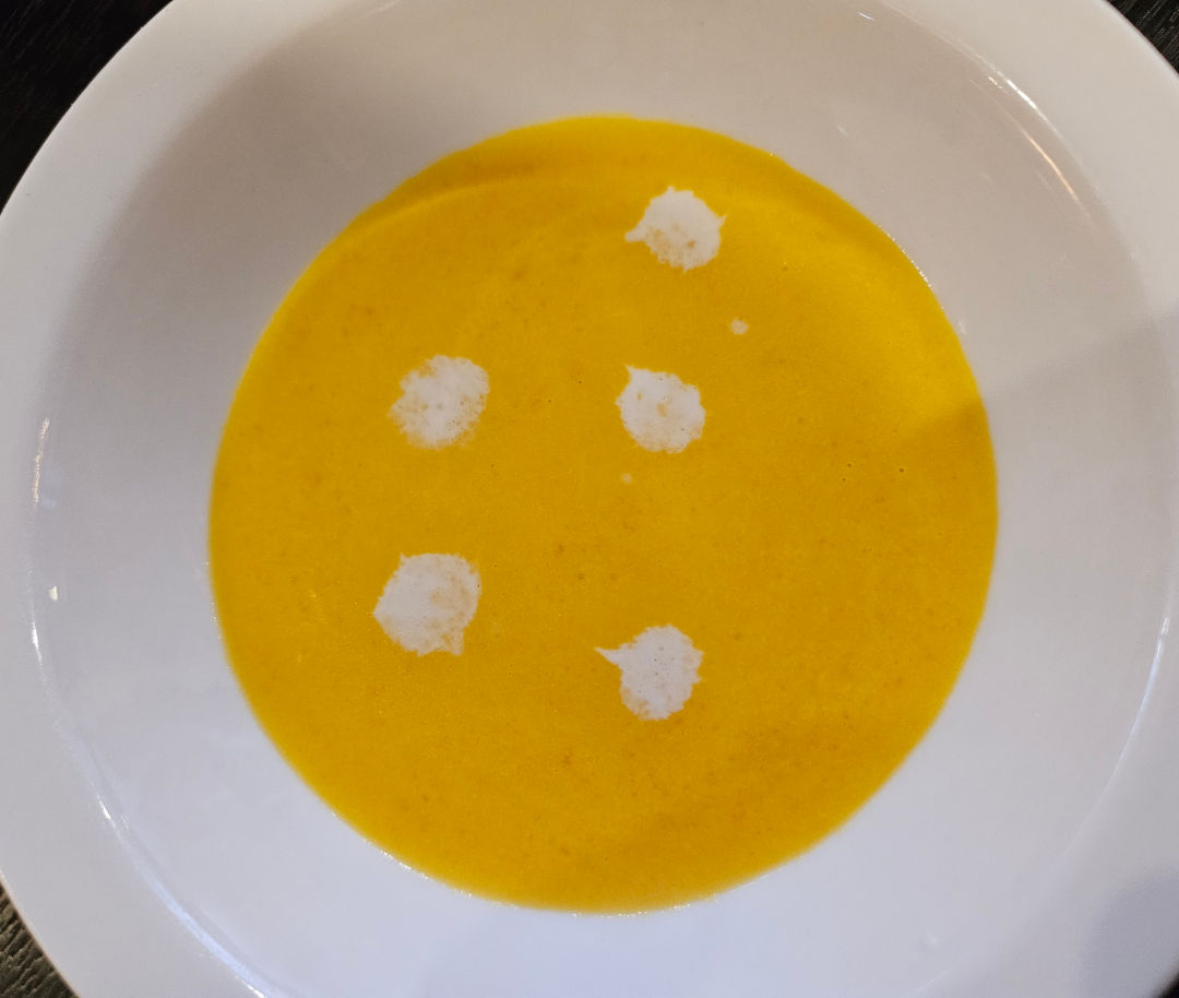 단호박 스프로 위에 크림을 올렸다고 한다.