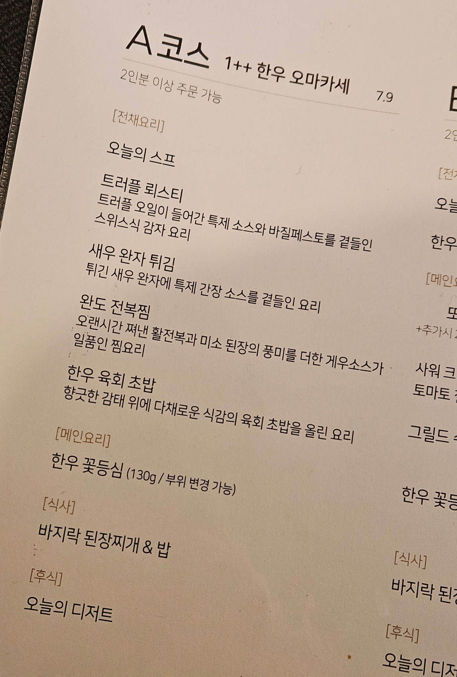 메뉴에는 없는데 오늘 가능하다고 하여 주문