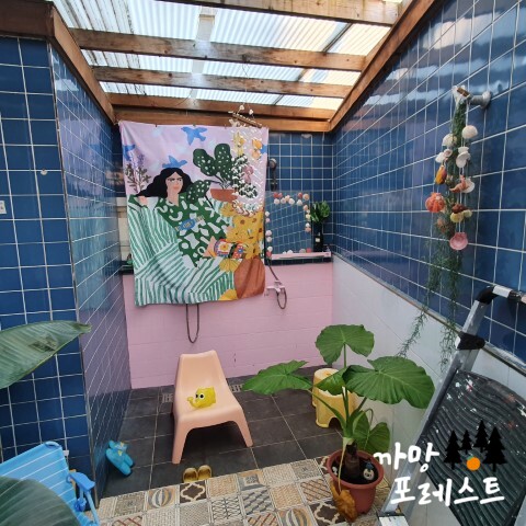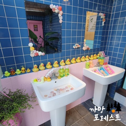 입구부터 목욕탕 분위기의 인테리어가 눈에 띕니다.