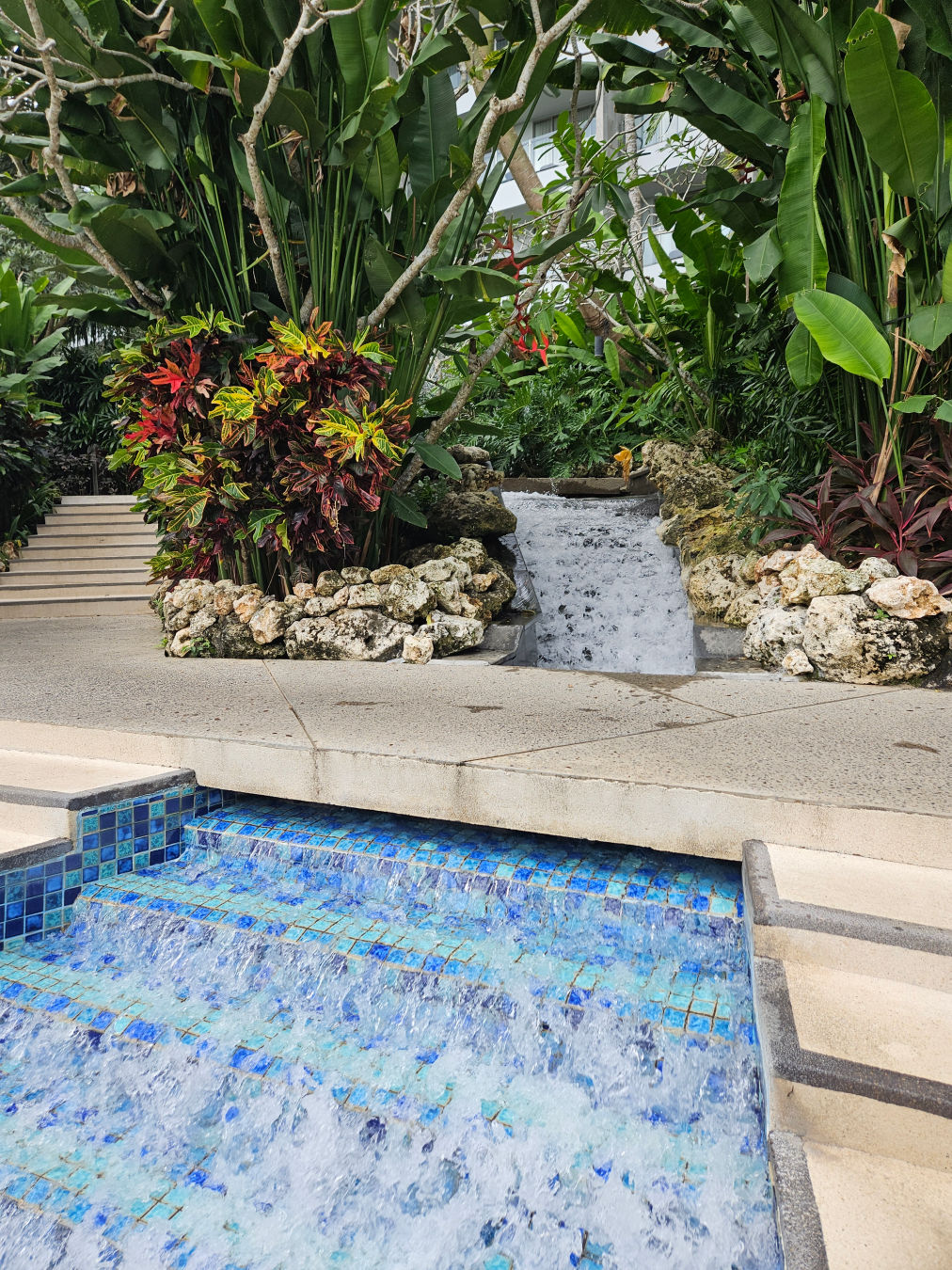 아야나 메인풀in 발리 아야나 리조트아야나 락바 가는 길에 있는 메인풀로 조각상에서 물을 뿜고 있는 곳이다. 정원 자체가 이뻐서 락바 오갈 때 구경하기 좋았다.오션 비치풀과 같은 인피니티