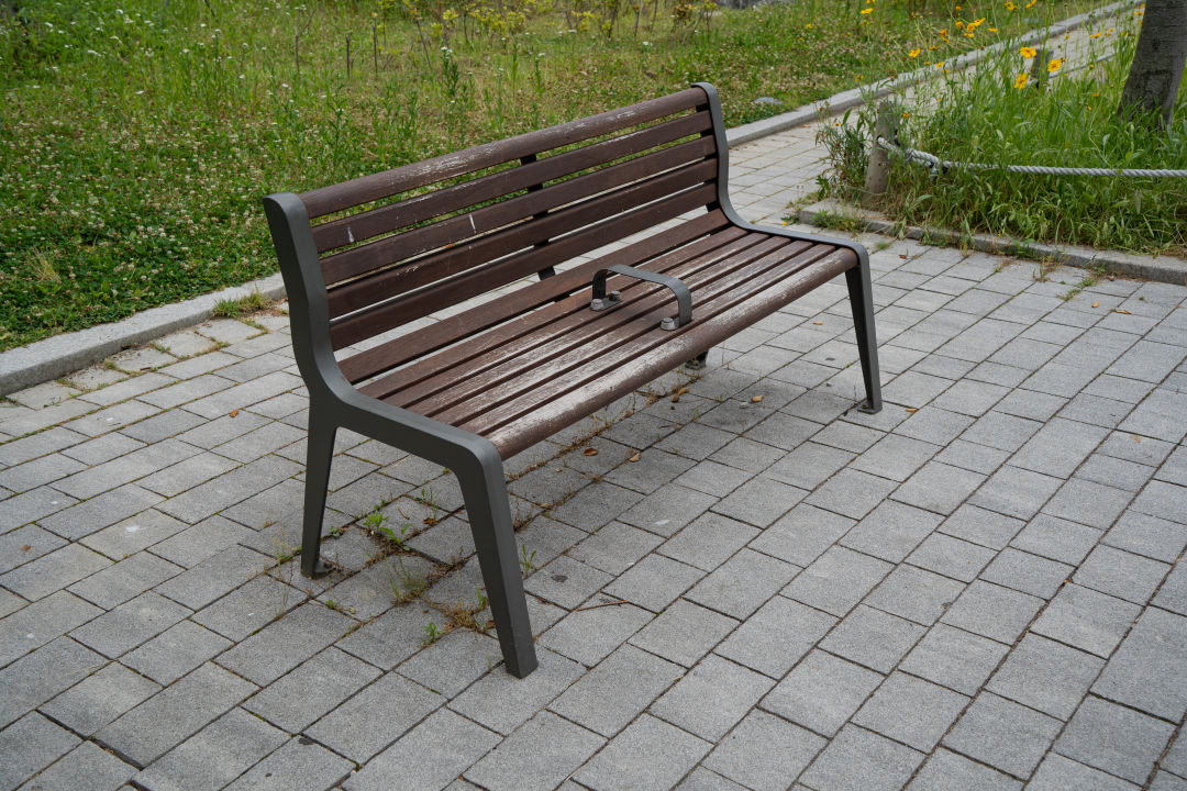 중간에 쉴 수 있는 벤치와 운동기구 보인다.