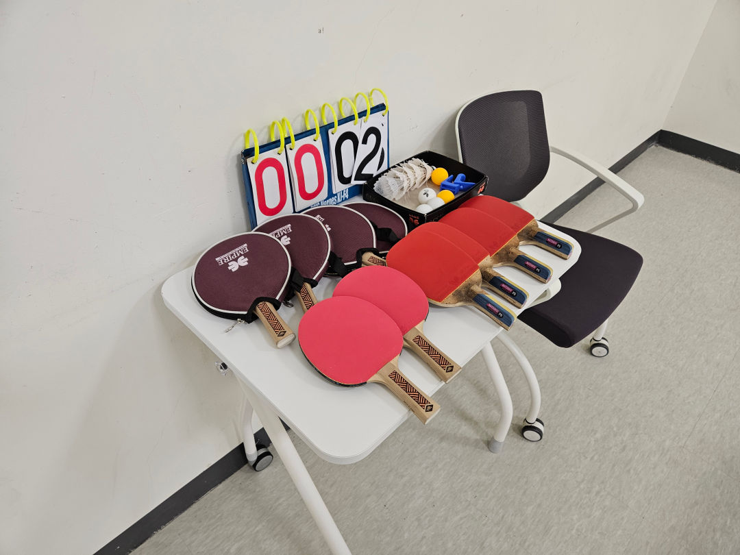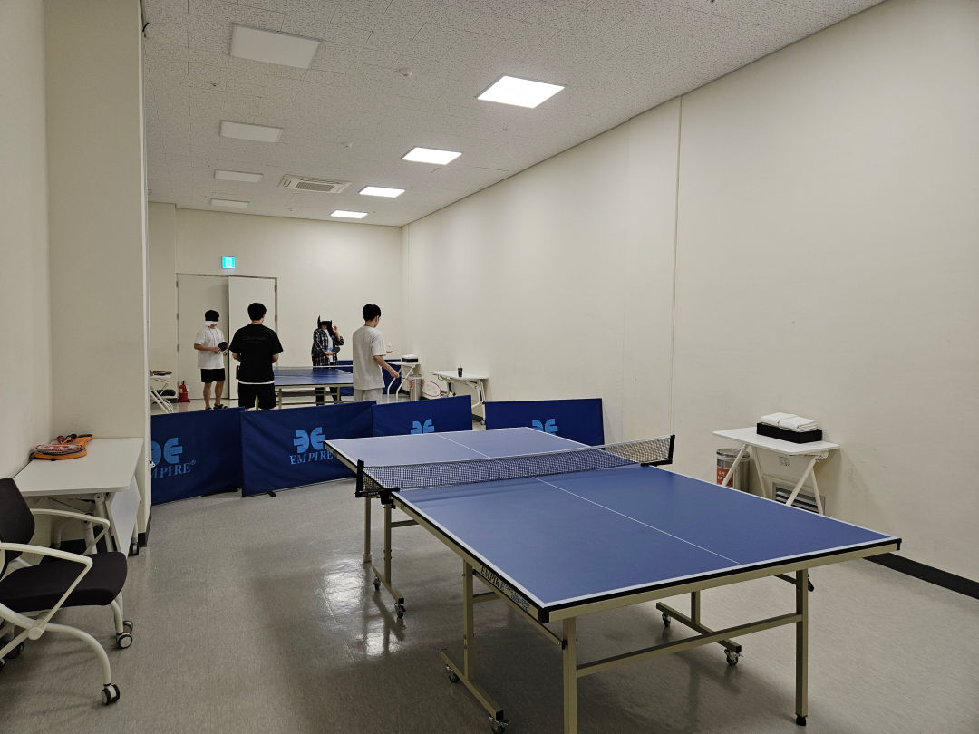 탁구대 2개 정도 놓여 있는데, 탁구채와 공은 비치되어 있었다.