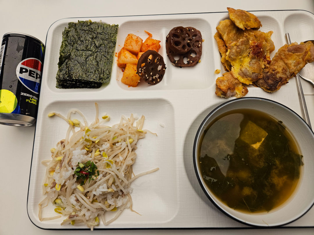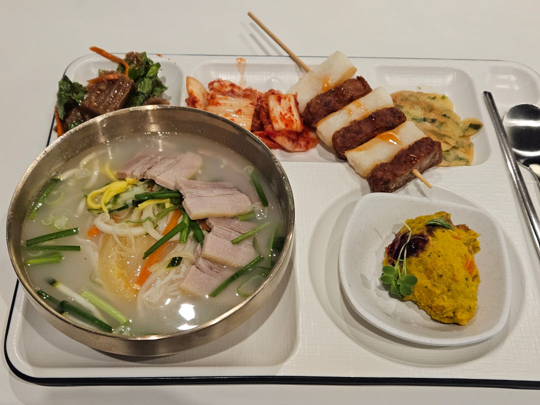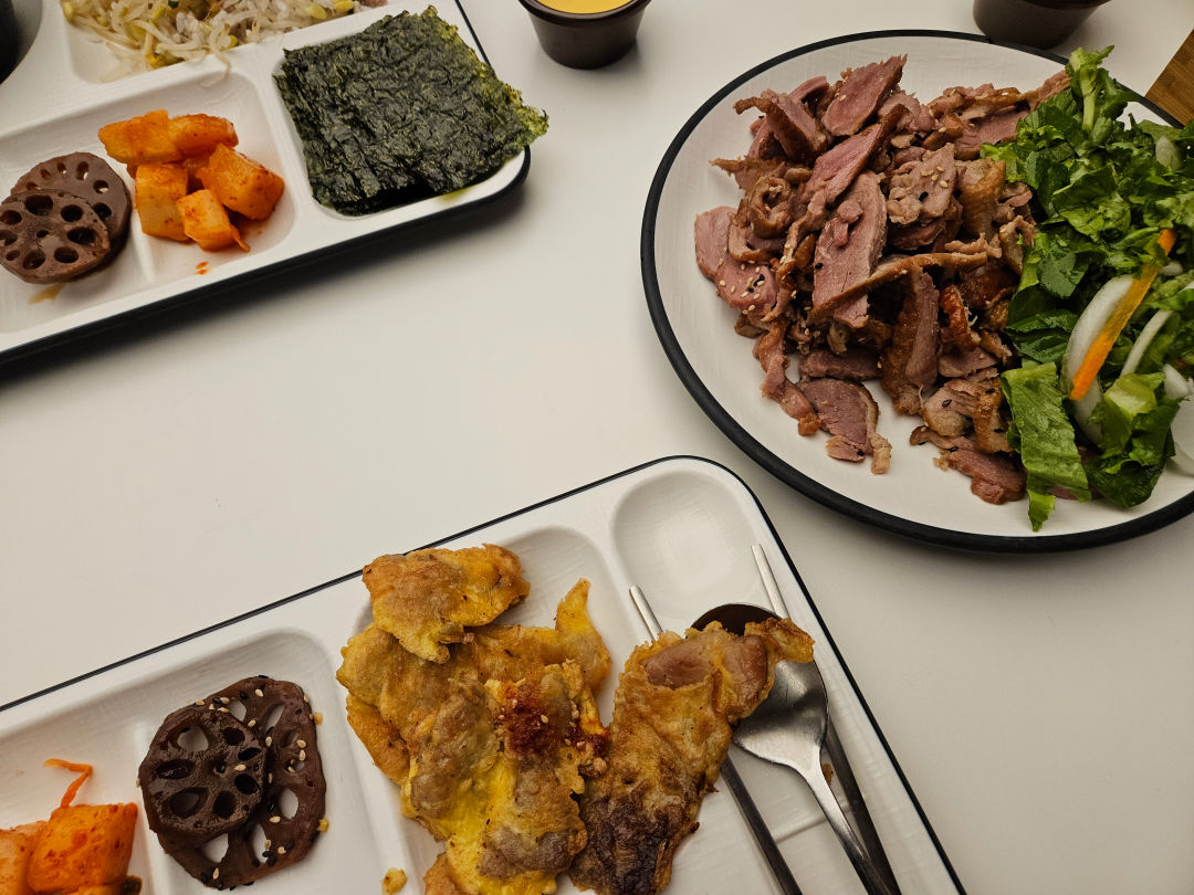 식판이 부족해서 같이 온 동료들과 중간에 두고 나눠먹었다.