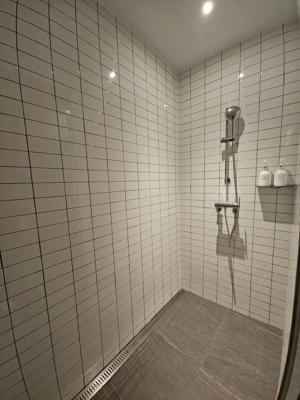 한쪽에는 샤워실, 다른 한쪽에는 변기가 구분되어 있다.