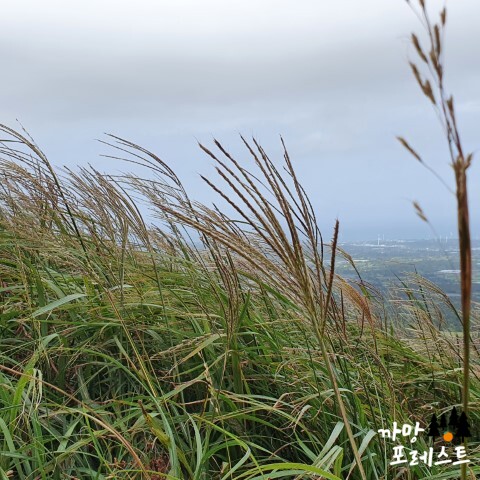 오름 정상에 오르니 확실히 바람이 많이 불더라구요.