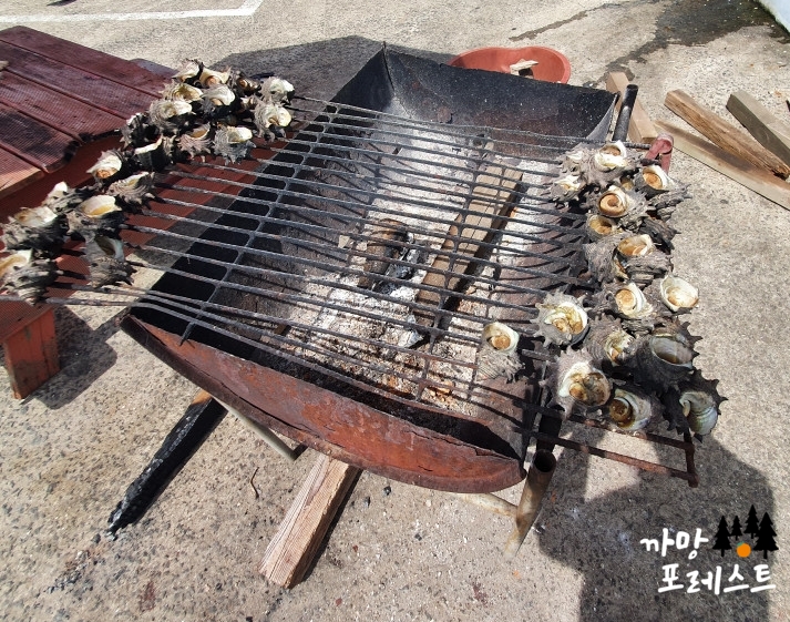 가게 앞에서 노릇노릇하게 구워지는 소라