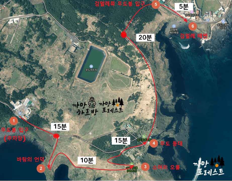 우도봉 입구에서 검멀레 해변까지 넘어간다면 1시간 정도 소요 됩니다.