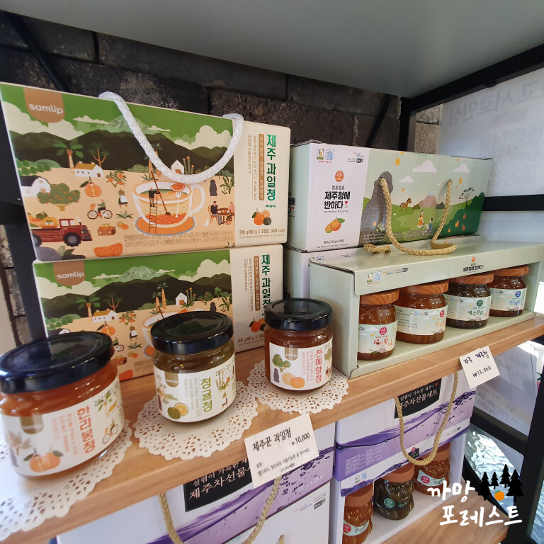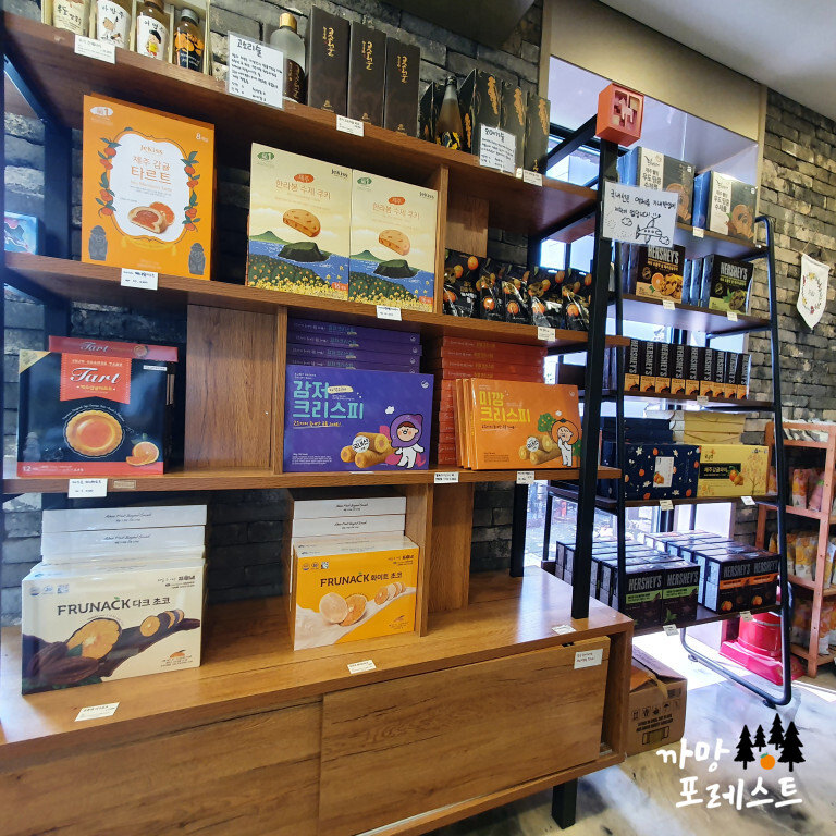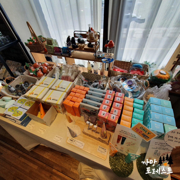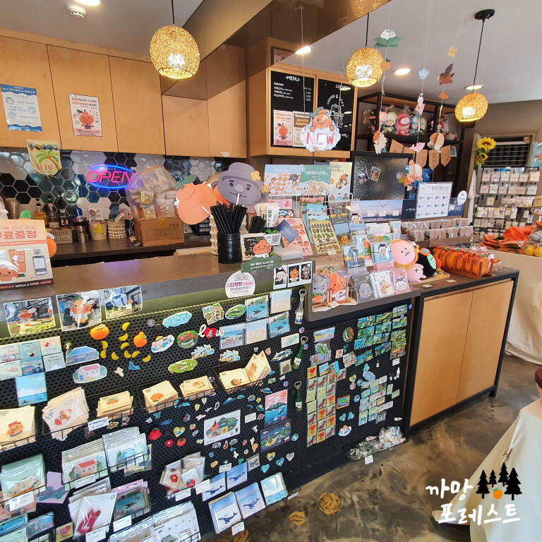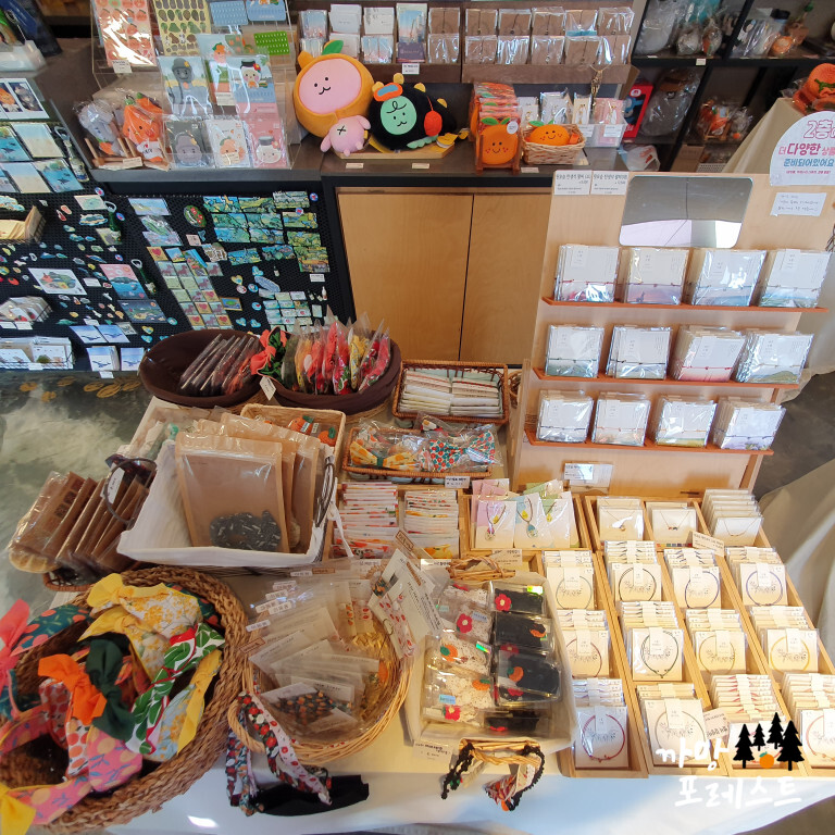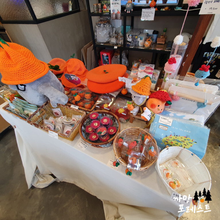 1층부터 마그넷과 귤모자 등 다양한 제품들이 진열되어 있었습니다.