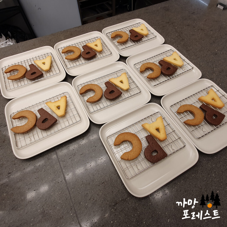 「 A 」 • 「P」 • 「C」 레터링 쿠키와 🍞