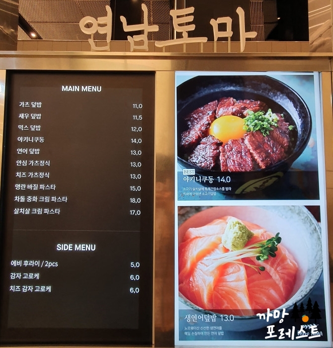 믹스 덮밥 / 야키니쿠동 / 안심 가츠 정식 / 명란 바질 파스타가