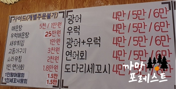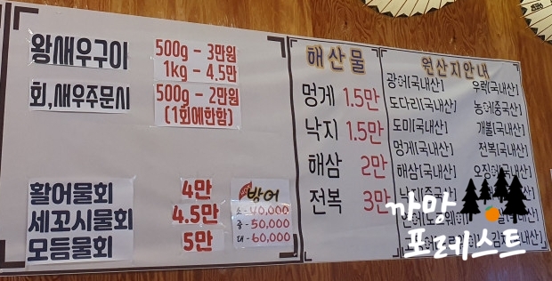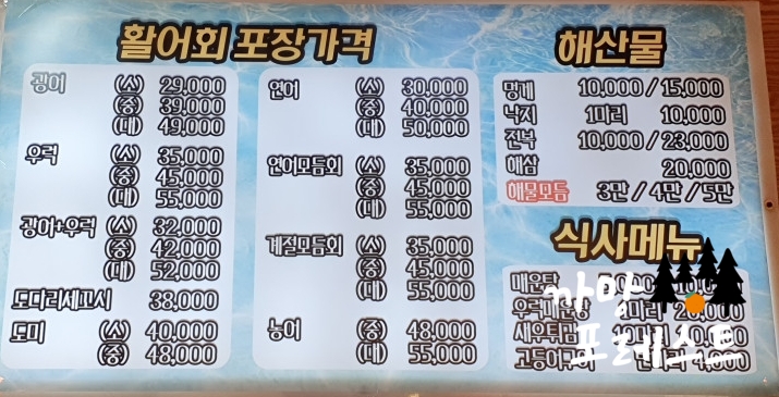 포장은 저렴한 가격으로 풍부한 횟감으로 되어 있다고 합니다.