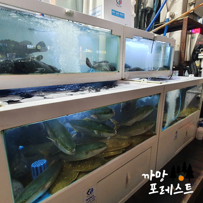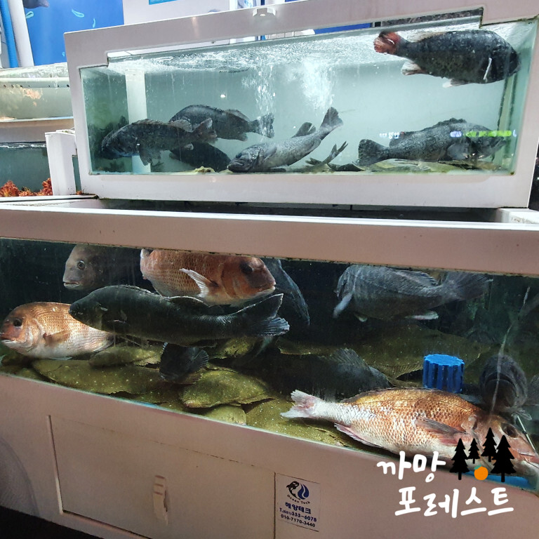 매장 앞에 보이는 싱싱한 물고기 🐟🐟🐟