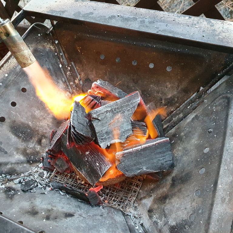 - 숯이 타는데 시간이 걸리므로 시간 여유를 가지면 좋습니다.