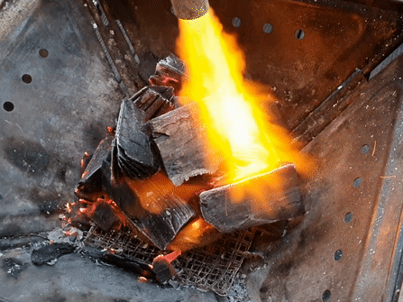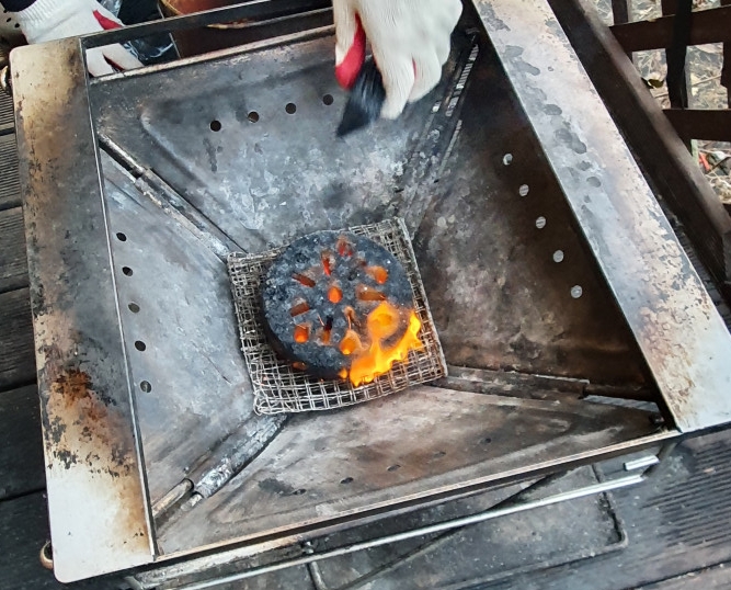 · 참숯의 크기는 잘게 쪼갤수록 잘 붙지만 오래 유지되지 않으므로 조절이 필요합니다.