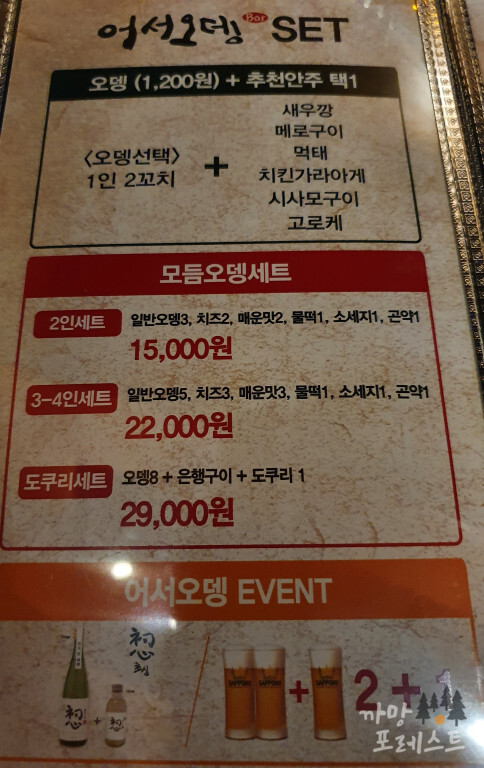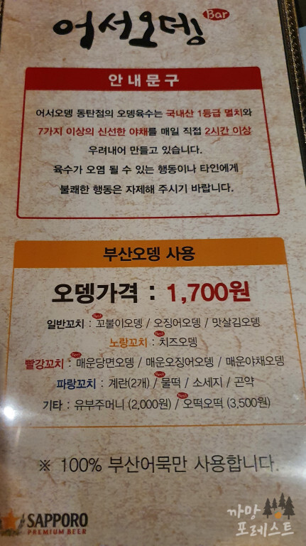 메뉴판에도 적혀있는데, 오뎅 꽂이에 색깔이 있어서