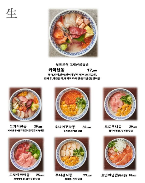메뉴가 덮밥부터 스시까지 다양하게 준비되어 있다.