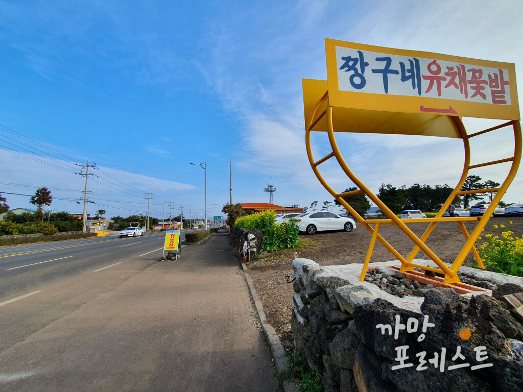 유채꽃 밭 앞에 주차장이 있어서