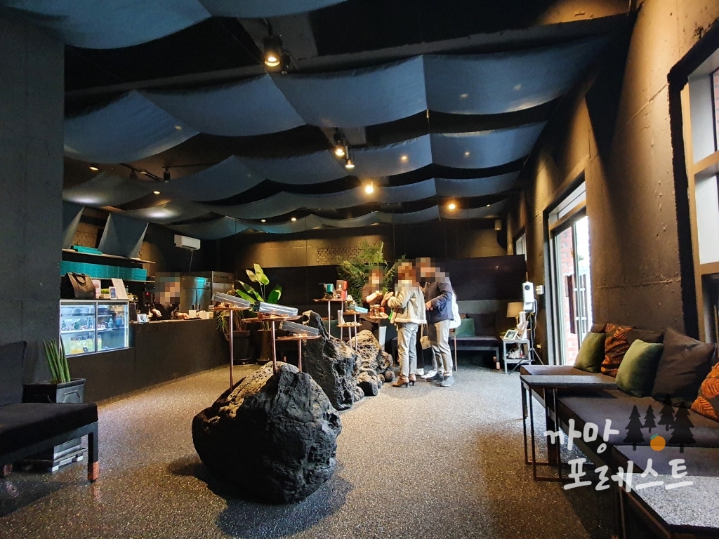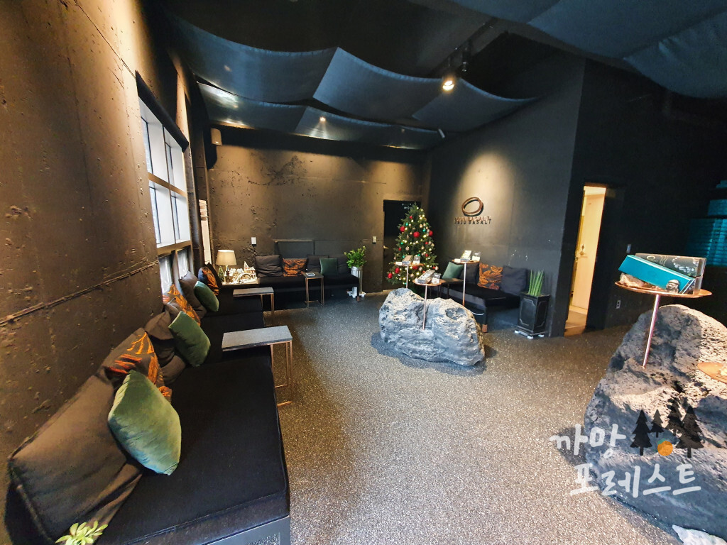 안에 들어서면 현무암 느낌의 다크한 분위기와 함께