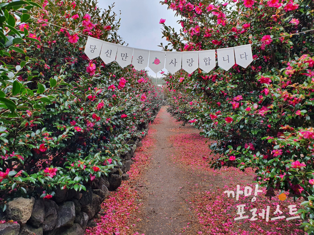 동백 군락지 안에 여러 포토존이 있다.
