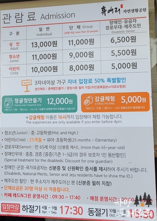 * 감귤 체험이나 동물 먹이주기 체험을 한다면 더 소요될 수 있다.