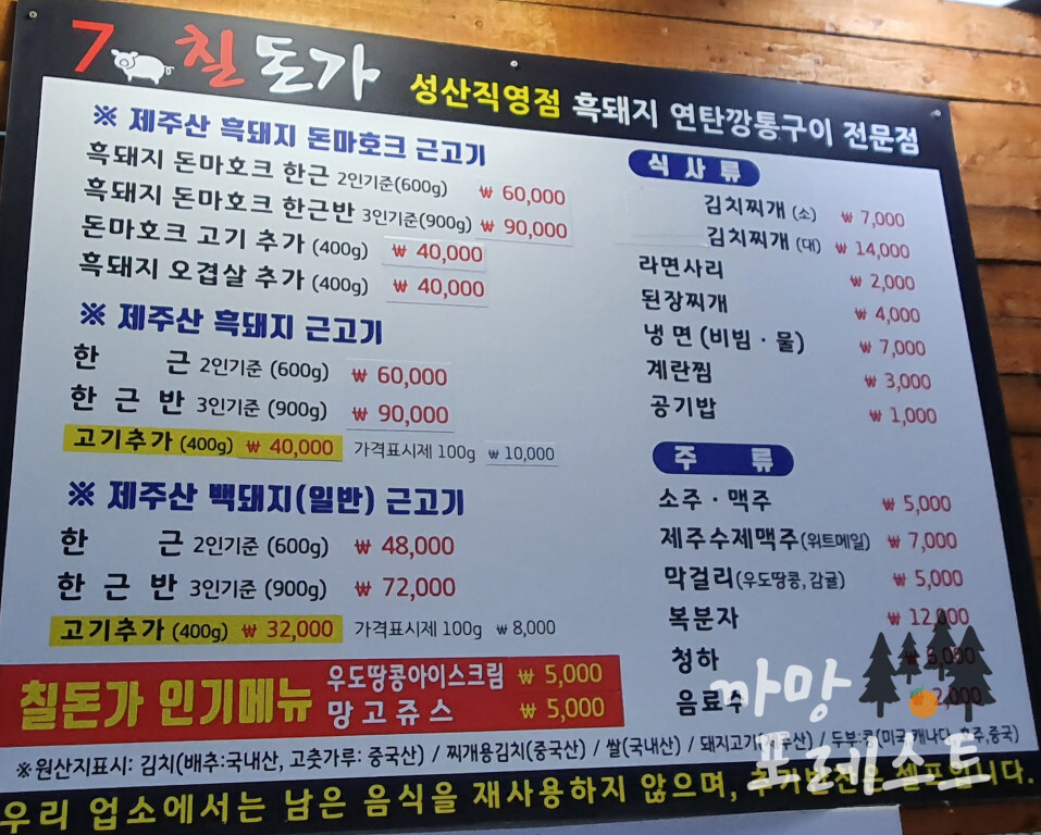 두툼한 흑돼지 고기가 인상적인 <칠돈가> 성산점