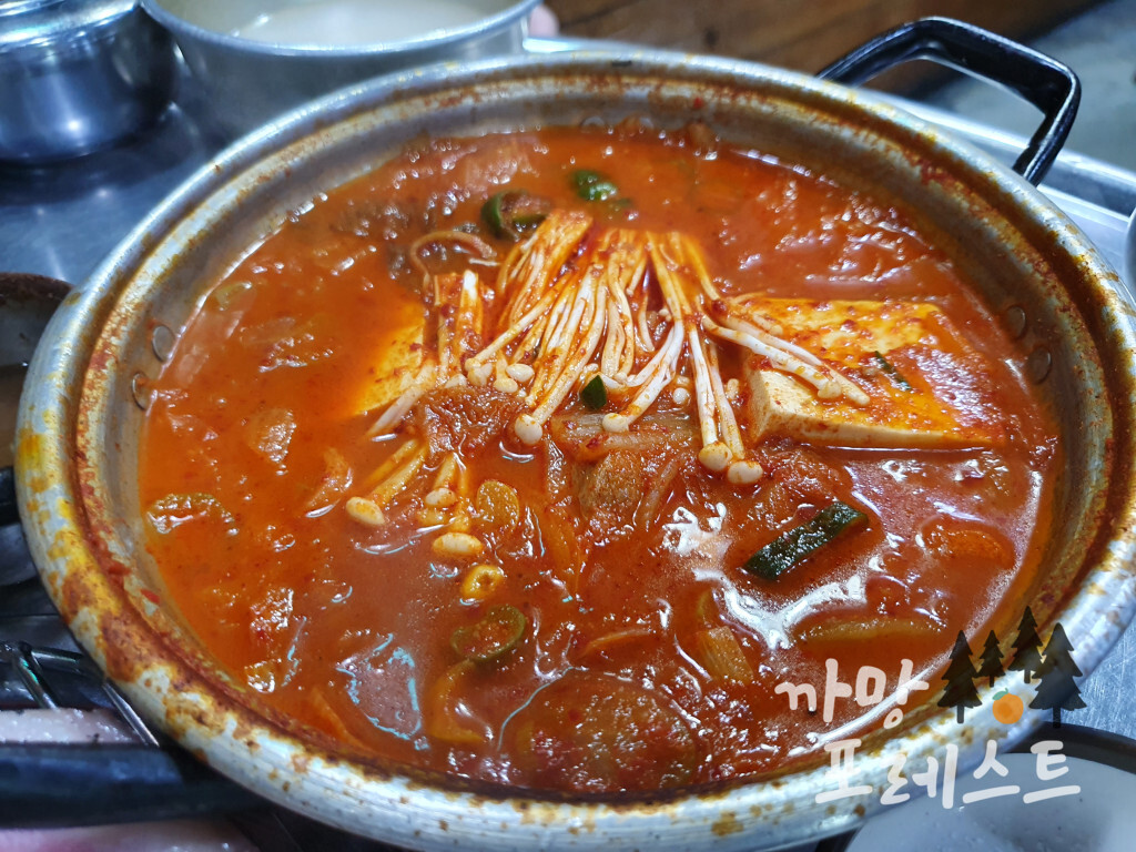 자세히 보면 연탄불 바로 위에 멜젓을 끓여주신다.👀