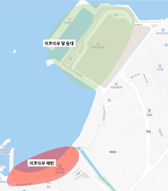 「이호테우 말등대」 키워드로 위치 확인하는 것을 추천한다.