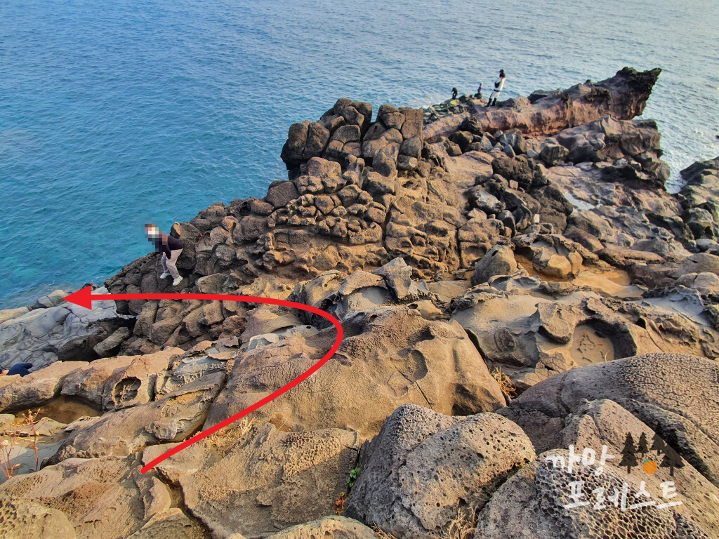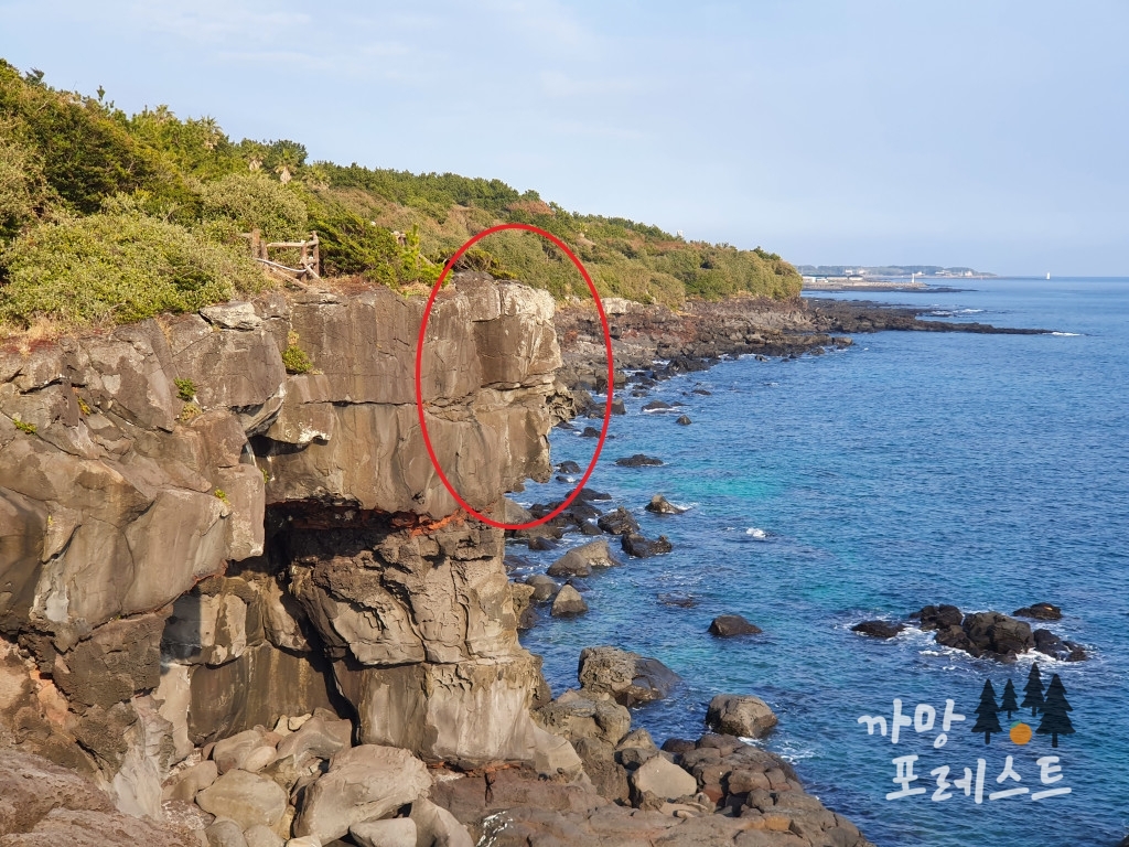 절벽에서 왼쪽(산책로 방향)으로 내려가야 한다.