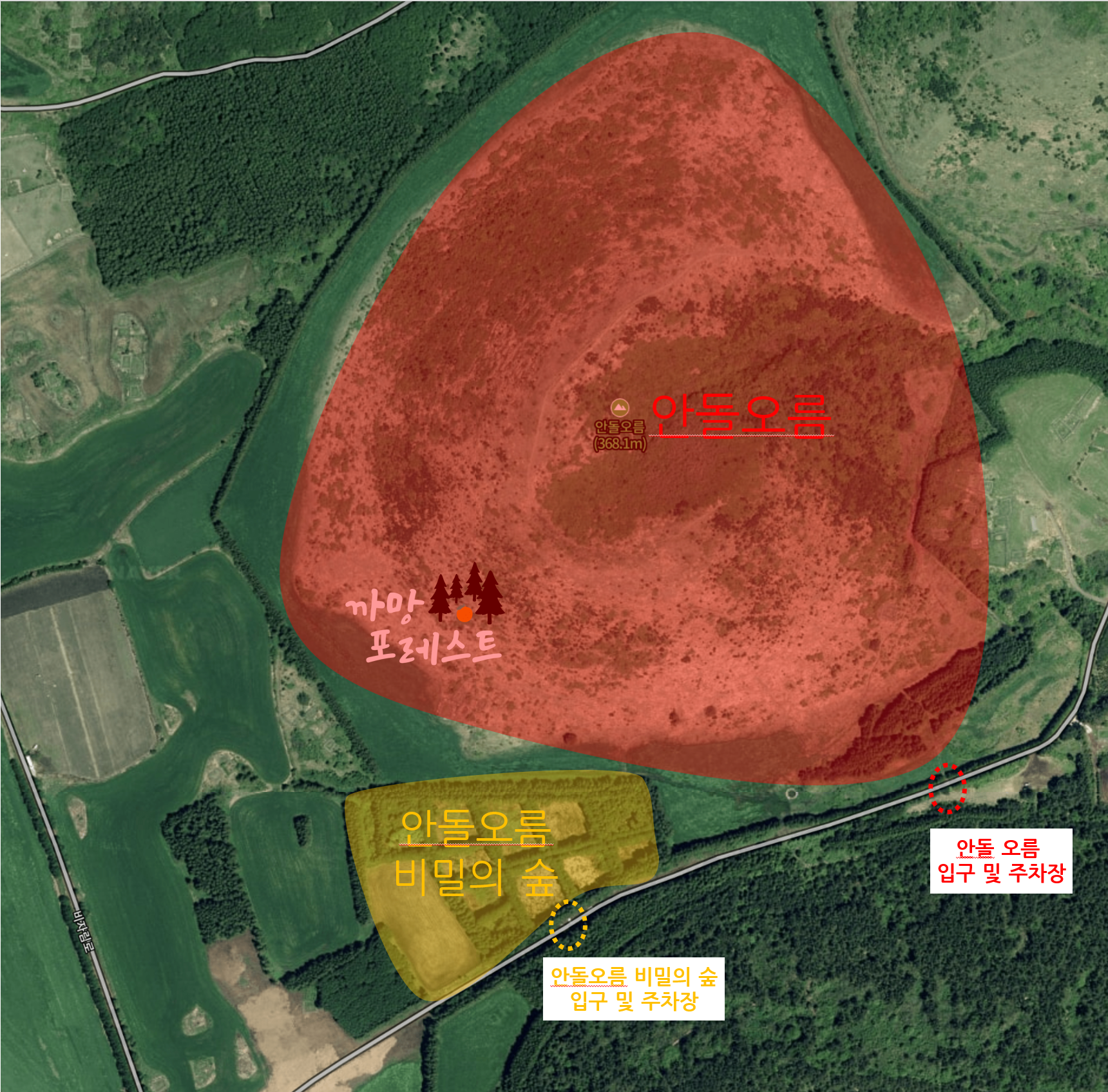 지도에 「안돌오름 비밀의 숲」이 등록되어 있지 않아서