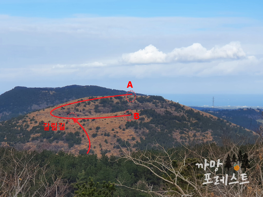 안돌오름 둘레길로 가려면 [A]쪽을 가야한다.
