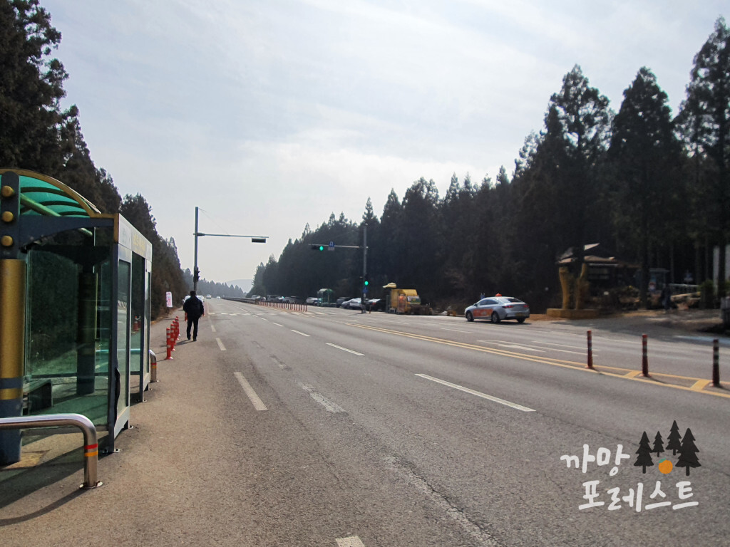 - 버스정류장(B): 「한라산 둘레길(사려니 숲길) 입구」