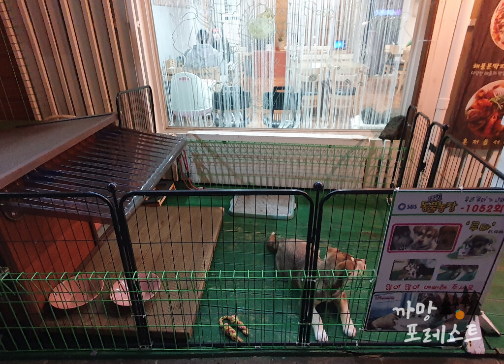 매장 앞에 방송에도 나온 강아지 "루타" 있다.