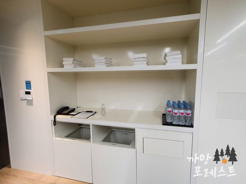 3층 안쪽에 위치하며 수건, 물과 옷장이 있다.