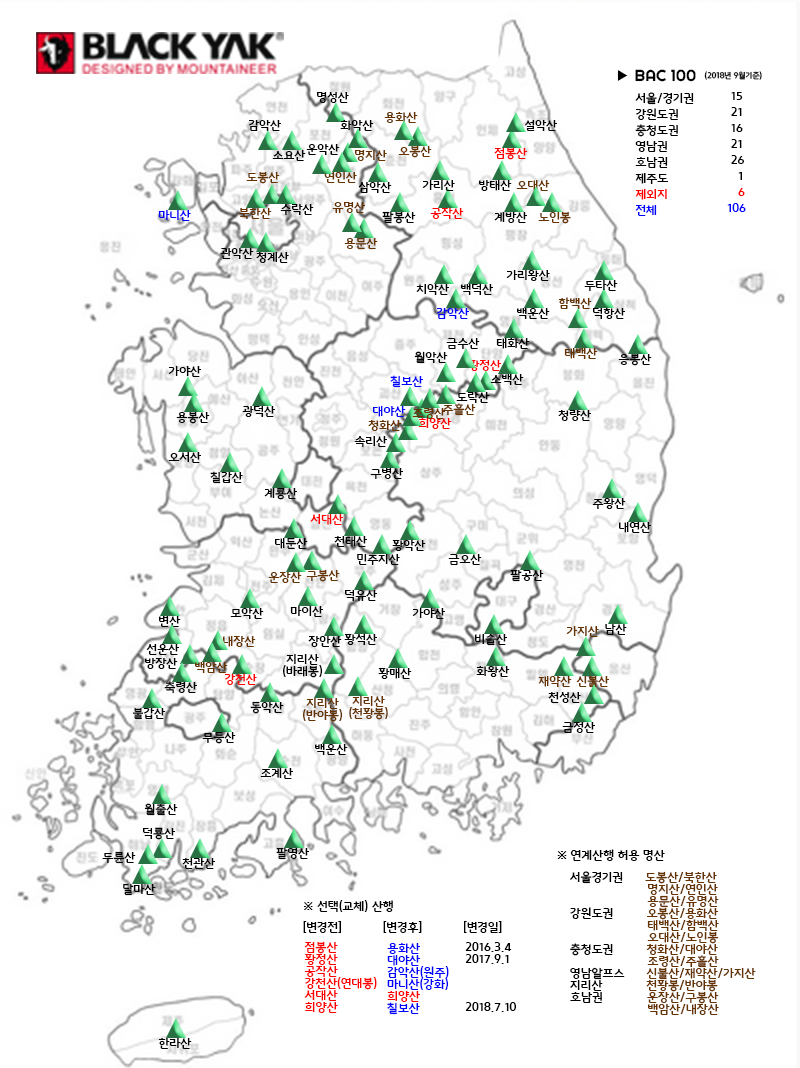 「명산 100+」 / 「백두대간」 / 「명산 100 어게인」 등