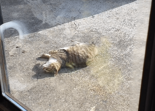 문너머 뒹굴고 있는 고양이