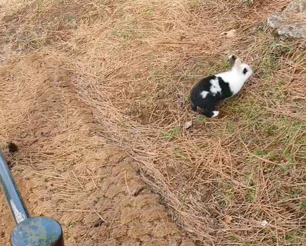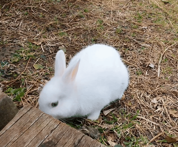 올라가는 서로 다른 색의 토끼가 뛰놀고 있다.
