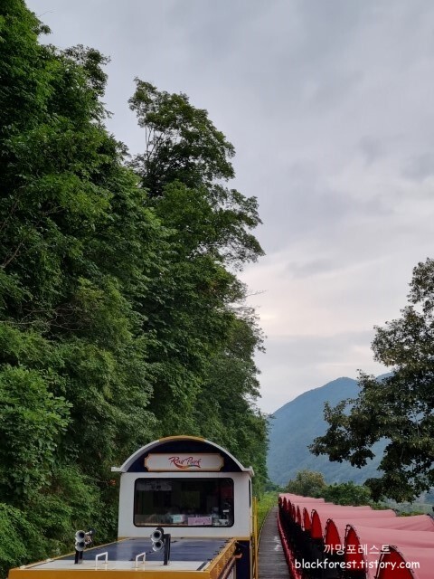 휴게소에서는 낭만열차를 타고 강촌마을 주차장으로 이동하는데,