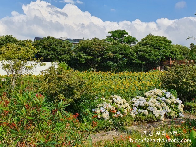해바라기 뿐만 아니라 다른 종류의 꽃들도 같이 감상할 수 있습니다.