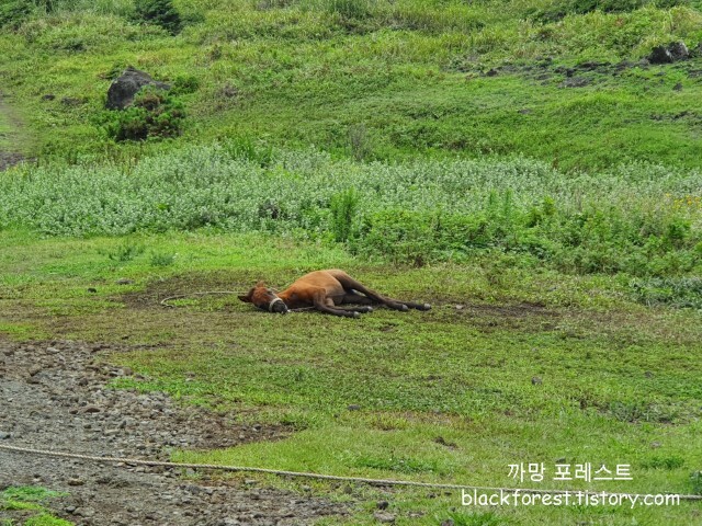 돌아올 때 보니 말도 옆으로 누워서 쉬는 모양입니다. 😂